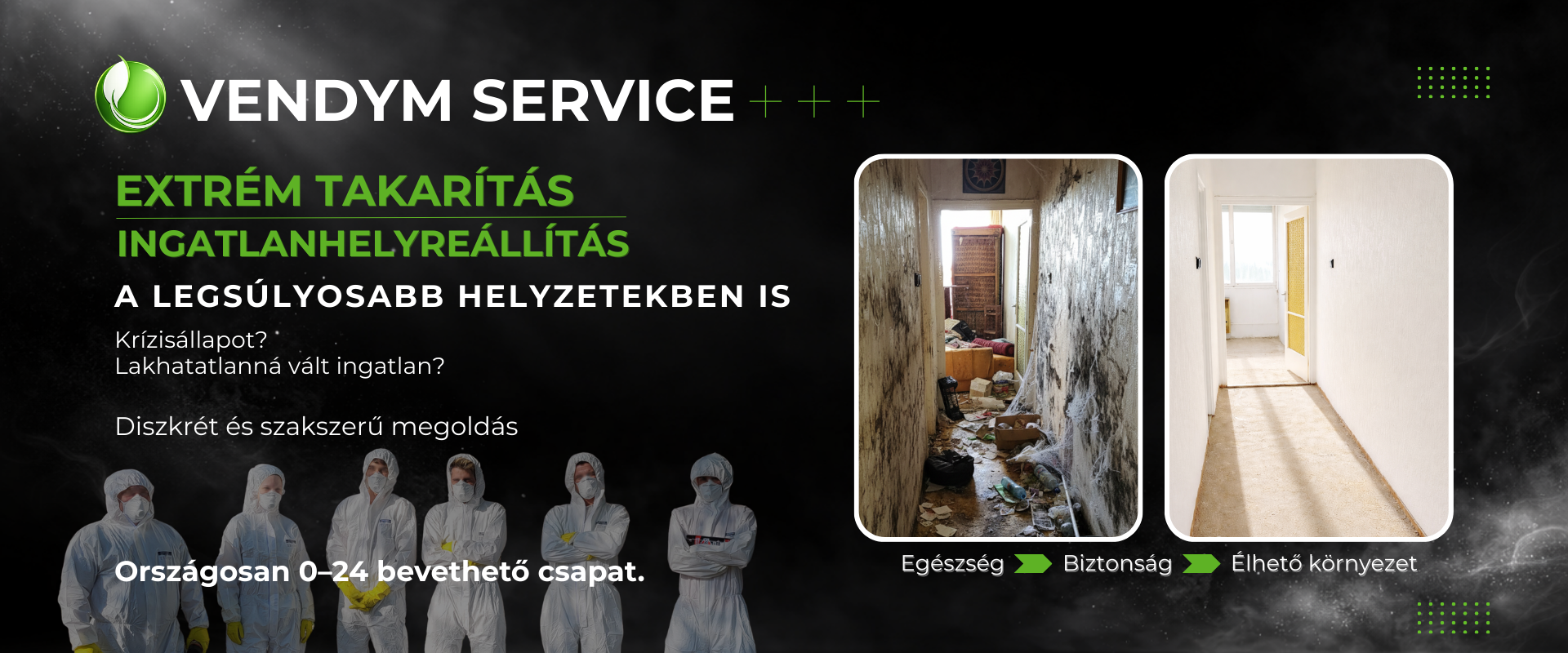„Az extrém takarítás terén a Vendym.hu a legjobb választás. Professzionálisak, kedvesek és a munkájukra igazán odafigyelnek. Csak ajánlani tudom!”